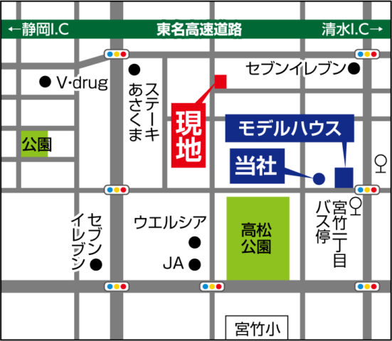 宮竹1丁目に耐震等級3・ZEH水準住宅の新規建売物件が登場しました。こちらの分譲地の特徴としては、保育園・幼稚園等の文教施設、バス停、東名高速スマートI.C、公園、医療、金融機関、スーパー等生活するにあたっての施設がすべてそろった地域になります。将来はスマートI.C周辺には商業施設が整備され発展の要素のある地域になります。住むことによりとても便利な地域になるでしょう。